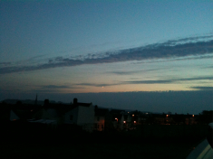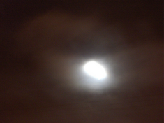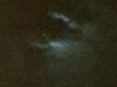 Complete cloud cover. Photo of street lamp in back lane through blackout curtains in the bedroom. It’s the peak of the Perseid shower, with meteor activity between midnight and dawn. Best viewing around 2am when the full moon is setting, low in the south to southwest sky. Hmmm.