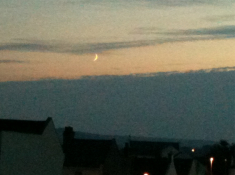 Sliding into dusk. Swarthmore allotment. The crescent far to the south-southwest.