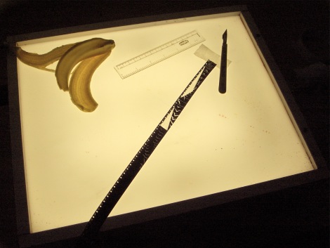 Photo: 16mm strip in progress for Measure, during Studio One residency (October 2009)