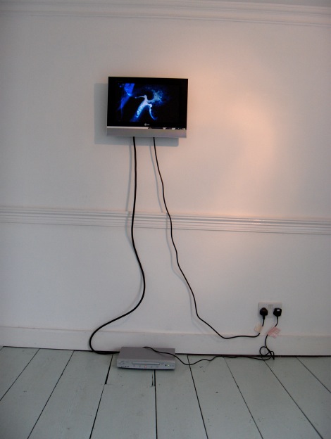 Stuart Moore and Kayla Parker exhibition at Salt Gallery, Hayle, Kernow, UK. Screened from looped DVDs on flat screen monitors mounted at head height on facing walls at 180 degrees. The visitor’s audiovisual experience of the piece is dependent on their position relative to the two screens: it is not possible to view both screens simultaneously, so the visitor is prompted to move to and fro around the gallery; and the soundtrack accompanying each screen is different, and changes continually because of the different lengths of the film loops and the relative position of the viewer. Solo exhibition with Stuart Moore (16 July to 19 August 2005)