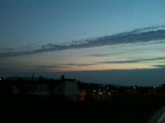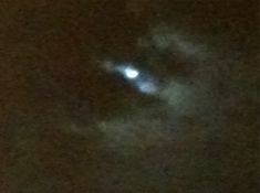 Complete cloud cover. Photo of street lamp in back lane through blackout curtains in the bedroom. It’s the peak of the Perseid shower, with meteor activity between midnight and dawn. Best viewing around 2am when the full moon is setting, low in the south to southwest sky. Hmmm.