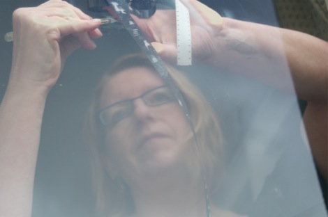 For each of the four days of the residency I created a scroll of drawings by etching into the emulsion layer of a 16mm filmstrip using a surgical scalpel fitted with a 10A blade. The length of each filmstrip was determined by a measurement of my body, such as the distance from fingertip to fingertip across my outstretched arms. I drew what I could see through the window of Studio One - magpies, seagulls, sycamore leaves, clouds, sunshine - using the glass pane as a lightbox; and I recorded my subjective experience on my MacBook Pro as ‘alphabetical writing’ that I uploaded at the end of each session. See Studio One blog. I am returning to Studio One to give a performance in the space in spring 2010: this event will be viewable ‘live’ by an audience, and is followed by an artist’s talk about the project, with screening.