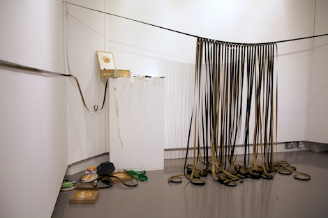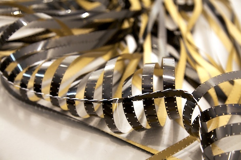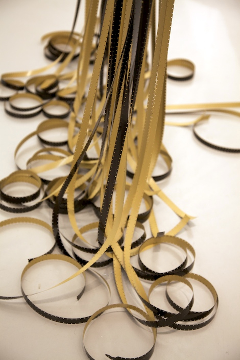 Image: detail of hanging 16mm filmstrips; photo Stuart Moore